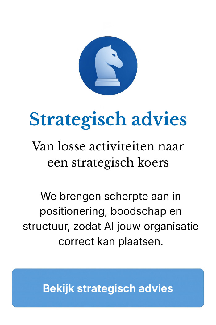 Resultaat: meer relevante zichtbaarheid, scherpere positionering en vaker selectie door mens én AI.